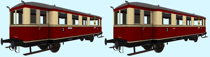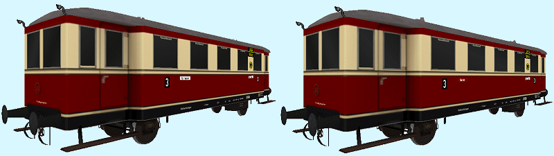 Bei den Modellen handelt es sich um Umbauten aus den Schienenbussen von Stefan Köhler-Sauerstein (SK2), der mir freundlicherweise die Original-Dateien zur weiteren Bearbeitung überlassen hat.