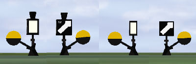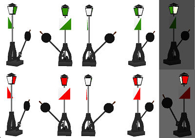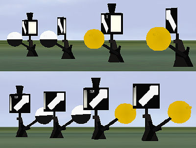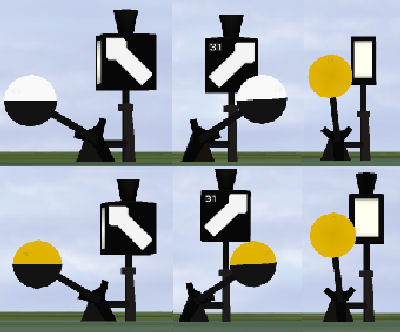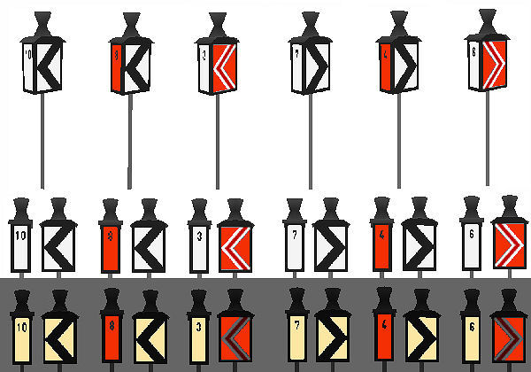 (oben Tagessignal, unten Nachtsignal) von links nach rechts: