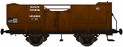 Und noch ein eigenwilliger Wagen aus Bayerischer Fertigung: ein eiserner Kohlenwagen Typ Omm[u] (307) aus dem Jahre 1906, der bei der DRG als Om(p) Ludwigshafen eingereiht wurde.