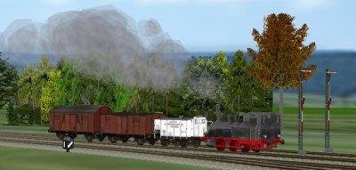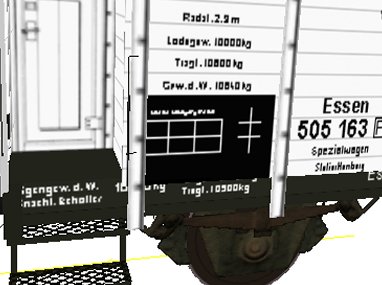 Grundsätzlich ist mit dem Nostruktor eine Detaillierung möglich, die zumindest der einer Modellbahn entspricht. Durch den Einsatz von Texturen, die entweder gezeichnet werden können oder von Fotos abgeleitet werden, lassen sich feinste Nieten und saubere Beschriftung darstellen. Einziger Nachteil: Ein so ausgeführtes Modell würde so viele Resourcen beanspruchen, daß man mit nur wenigen Modelle den Rechner in die Knie zwingen würde. Also gilt es, einen vernünftigen Kompromiss zu finden.