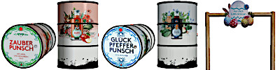 | 26.12.2022 Weihnachtsmodelle ![]() V11_WX2022_03 | ![]() | Fässer Fässer, jeweils stehend und liegend (10 Modelle) Kreuzung in Winterausführung (1 Modell) |