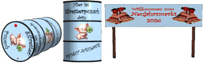 | 31.12.2025 Silvestermodelle ![]() V14Sil25_01 | ![]() | Fässer Fässer, stehend und liegend (2 Modelle). Schild: 'Neujahrsmarkt' Gleicher Download wie bei den Gterwagen! |