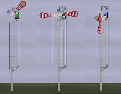Die Modelle sind wiederum für EEP6 bzw. EEP mit PlugIn5 vorgesehen. Da die Züge nicht unmittelbar an den Signalen anhalten mußten, empfielt es sich, die Signale an einem zusätzlichen unsichtbaren Gleisstück in Bahnsteigmitte aufzustellen. Für die eigentlichen Haltepunkte gibt es das unsichtbare Signal KK1_bay_unsichtbar. Durch Verknüpfung der Signalfunktionen lassen sich die unsichtbaren Signale zusammen mit dem eigentlichen (Perron-)Signal schalten.