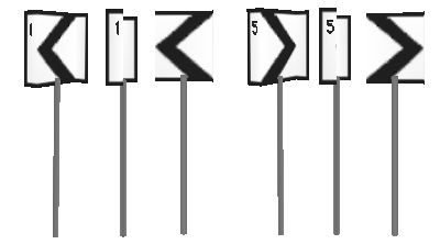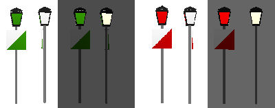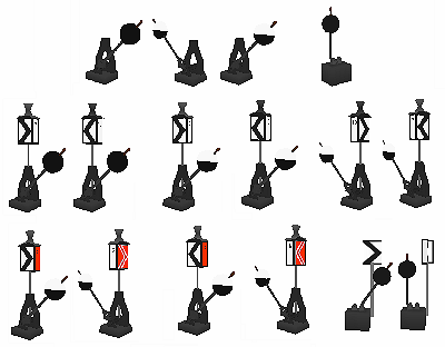 (oben Tagessignal, unten Nachtsignal) von links nach rechts:
